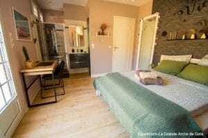 Nichée dans un écrin de verdure, notre chambre d’hôtes de 16 m² vous invite à un séjour paisible et ressourçant, où chaque détail a été pensé pour votre confort.